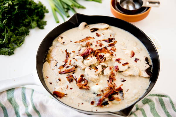 This keto creamy garlic chicken has a prep time of only 30 minutes, making it a perfect weeknight dinner. Use the cream sauce to drizzle on low-carb veggies.