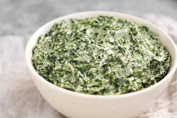 This keto creamed spinach uses cream cheese, grass-fed butter, and garlic for a great low-carb alternative to regular potato or pasta sides.