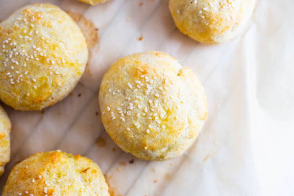 These keto hamburger buns are made with almond flour, cream cheese, and sesame seeds. They’re also low-carb, paleo, and gluten-free, and contain just 2.4 net carbs.