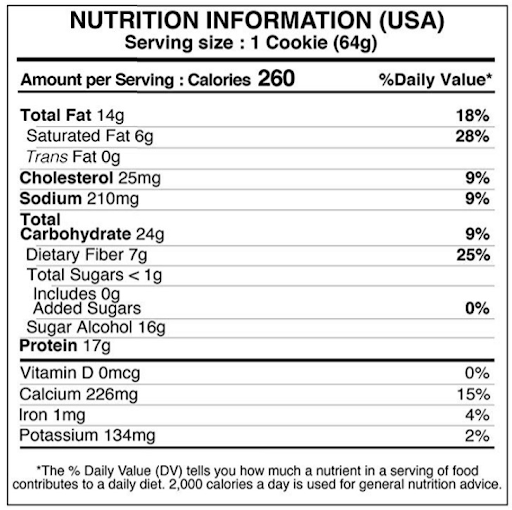 Keto Thin cookies offer up more fat and protein than other cookies on this list, but they’re higher than most in the dietary fiber department. That’s all due to the ingredients.
