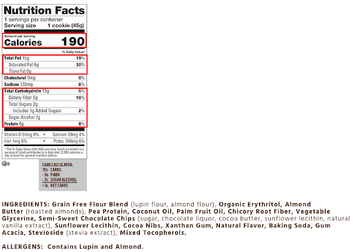 While we can’t compare your grandma’s cookies, we can use a famous name brand to demonstrate the differences between high-carb and keto cookies.