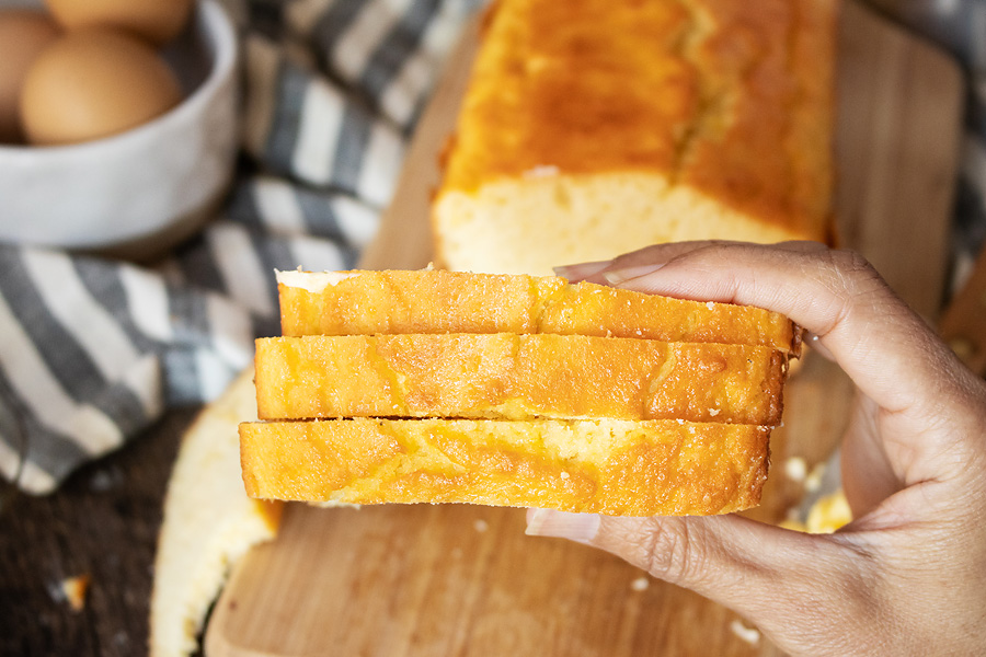 The eggs and butter will help this low carb bread moist and delicious. Do not overbake. Cook just until the edges begin to brown and a toothpick comes out clean when poked through the center of the loaf.