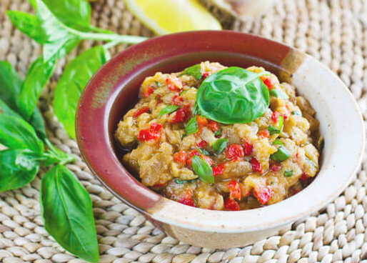 Eggplant makes an excellent addition to dips, as exemplified by this rich and creamy roasted red pepper and eggplant dip. This recipe hits all the dietary restrictions — low-carb, paleo, vegan, gluten-free, and dairy-free. You can feel confident whipping up a match of this dip and bringing it to any social gathering.