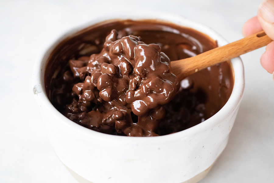 - Add chocolate to a small separate bowl. Microwave on 50% heat in 20 increments until melted. Stir in between each cycle.