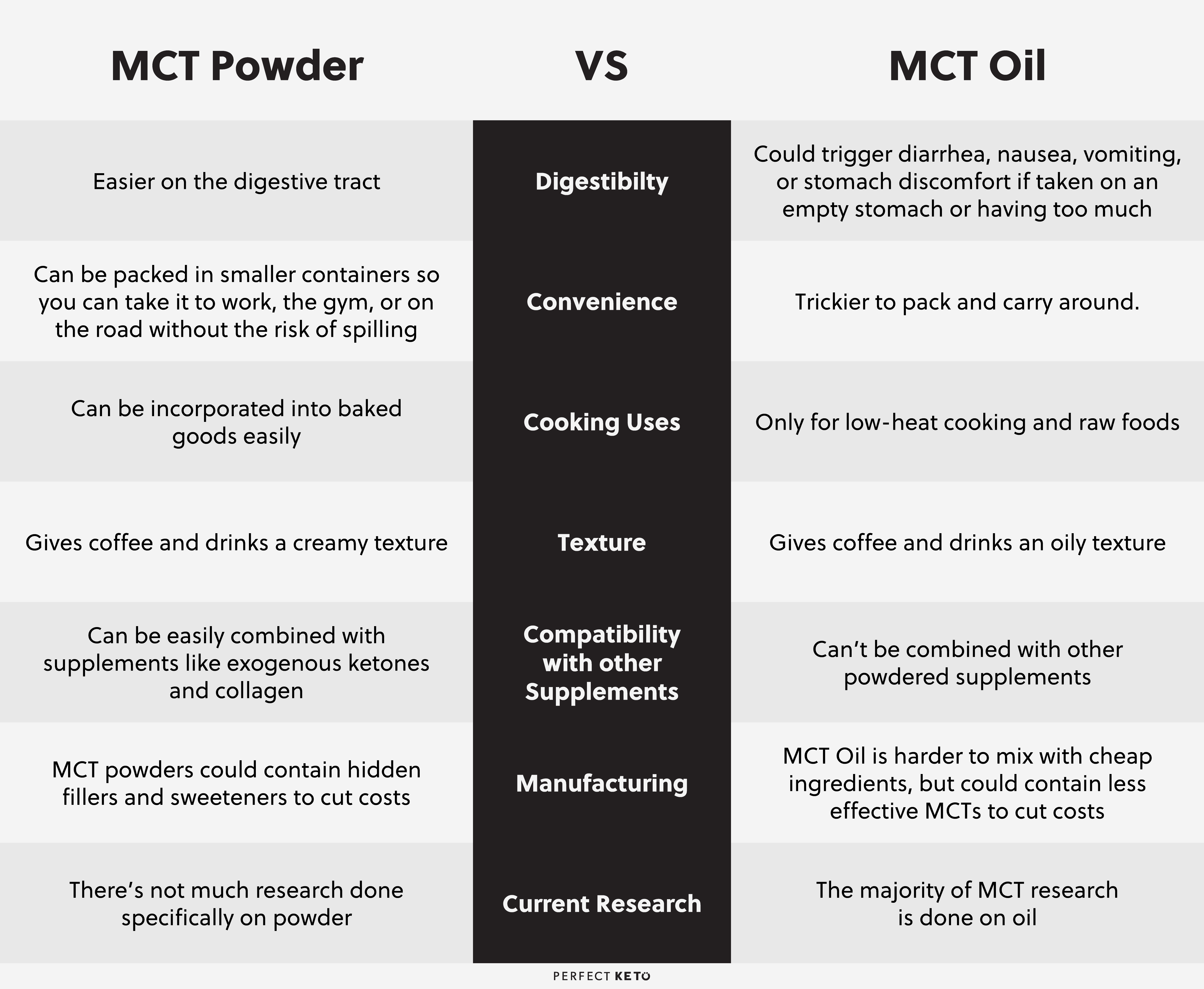 To learn about the differences between these two keto supplements, check out this handy chart for a quick review: