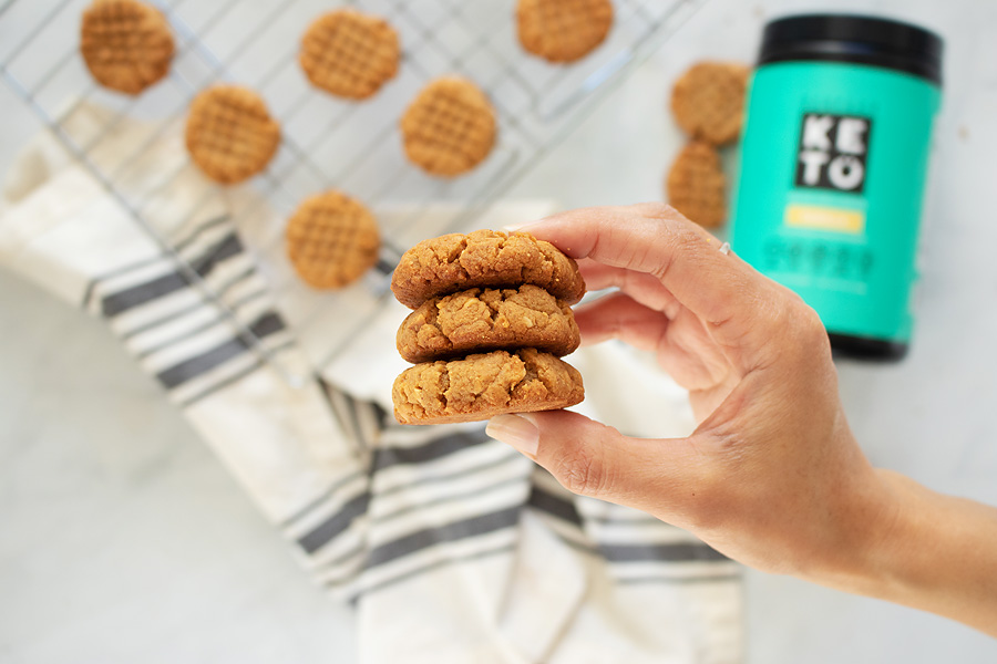 It’s not often that you get to eat a cookie that also helps to stabilize your blood sugar. With only one net carb and seven grams of protein, these low-carb peanut butter cookies won’t send your blood sugar soaring like most cookies you find on the shelves.