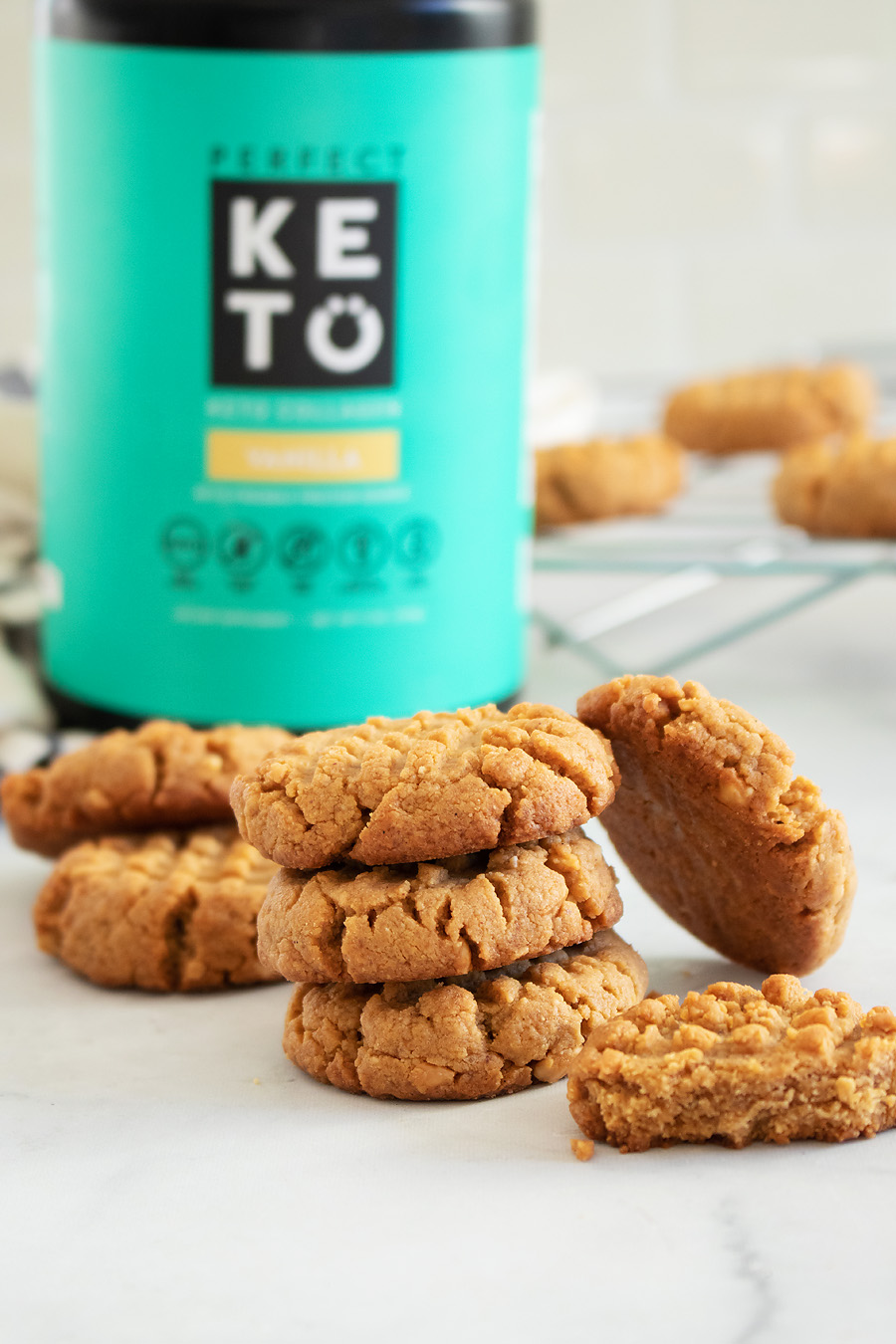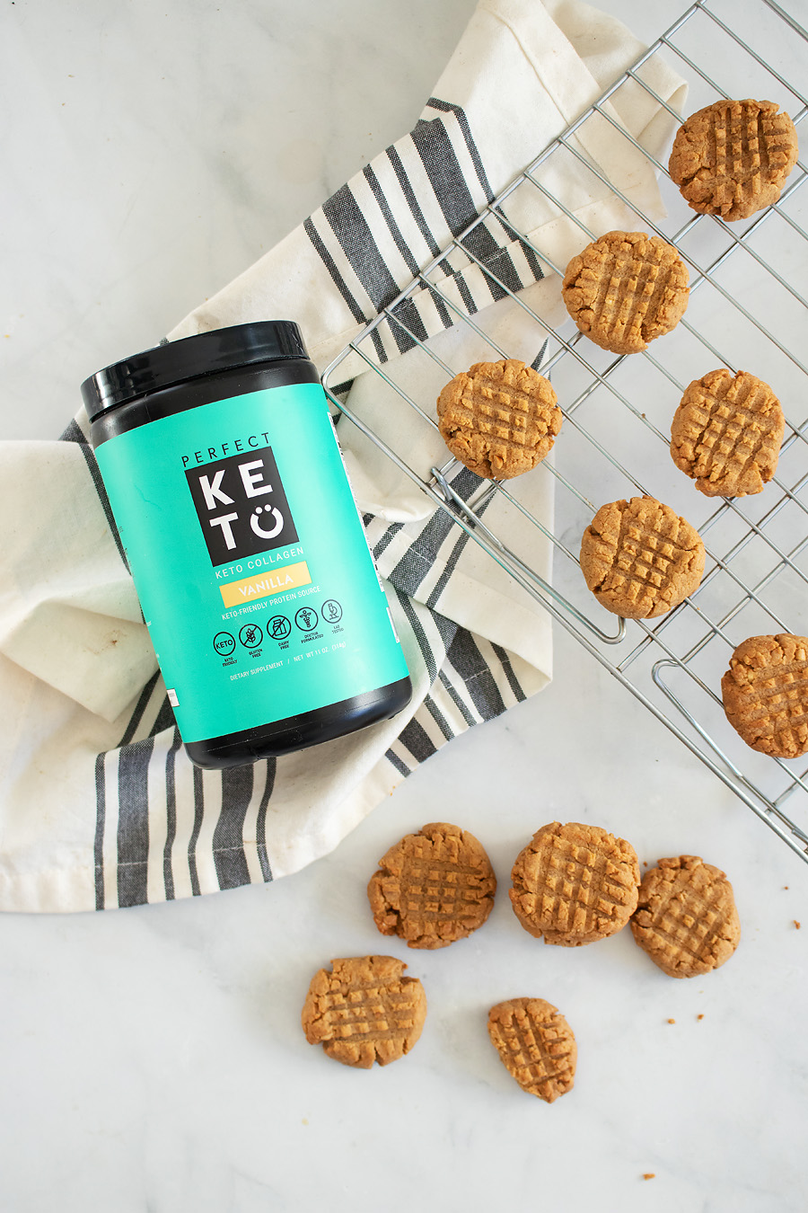 If you’re looking for an already-made keto cookie with added collagen and super clean ingredients, check out the Perfect Keto cookie. With just 4 net carbs per serving and ultra-convenient packaging, you’ll love this sweet snack that won’t kick you out of ketosis.