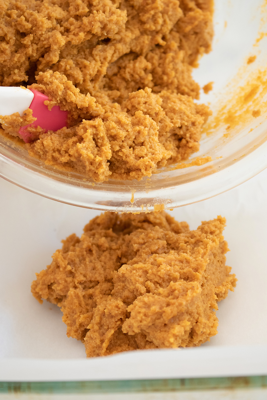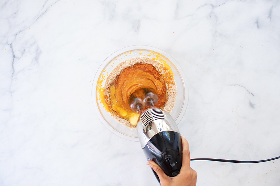 - In a large mixing bowl or stand mixer, add all dry ingredients (almond flour, coconut flour, baking soda, spices, and salt). Whisk well to combine. Add in remaining ingredients and mix well until smooth.