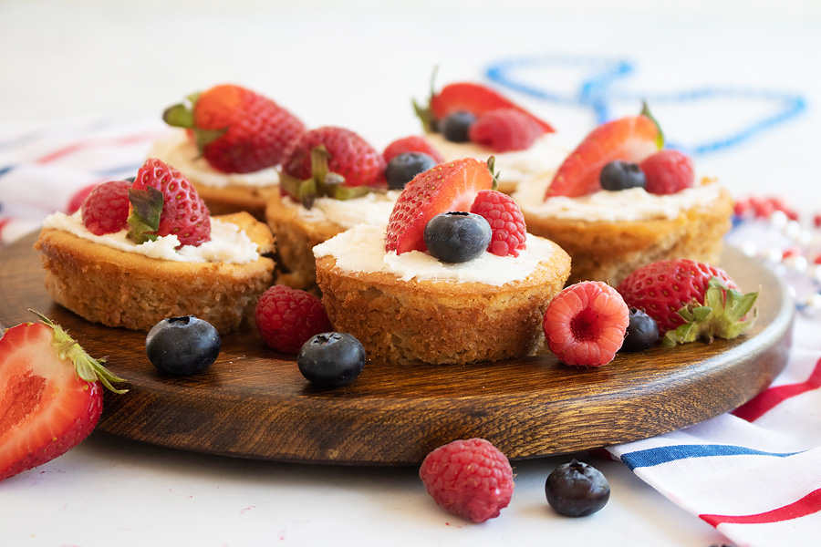 However you decorate your red, white, and blue patriotic cupcakes, they’re sure to be a hit — but not on your blood sugar! These cupcakes are sugar-free and only 2 net carbs per cake.